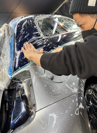 前回はフロントガラス・ボンネット・ヘッドライトの施工を行いましたのでそれ以外の箇所にフィルムを張り付けていきます。