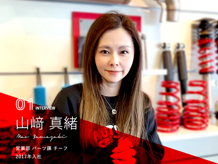 カスタムパーツのセレクト仕入れ、販売、管理、開発を行いながら、オンラインショップ運営やショールーム内のパーツ課という小さな括りですが、業務内容はすごーく振り幅が大きく、やりがいを感じています。